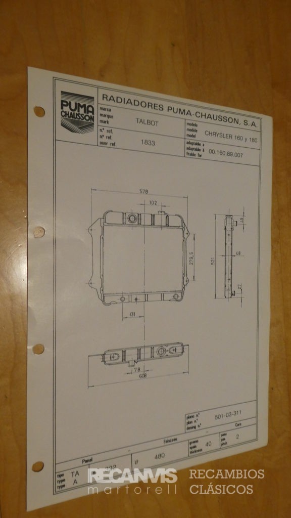 Publicado 21/12/2022 en 576 &veces; 1024 en 8504430 RADIADOR REFRIGERACION MOTOR CHRYSLER TALBOT 160 180