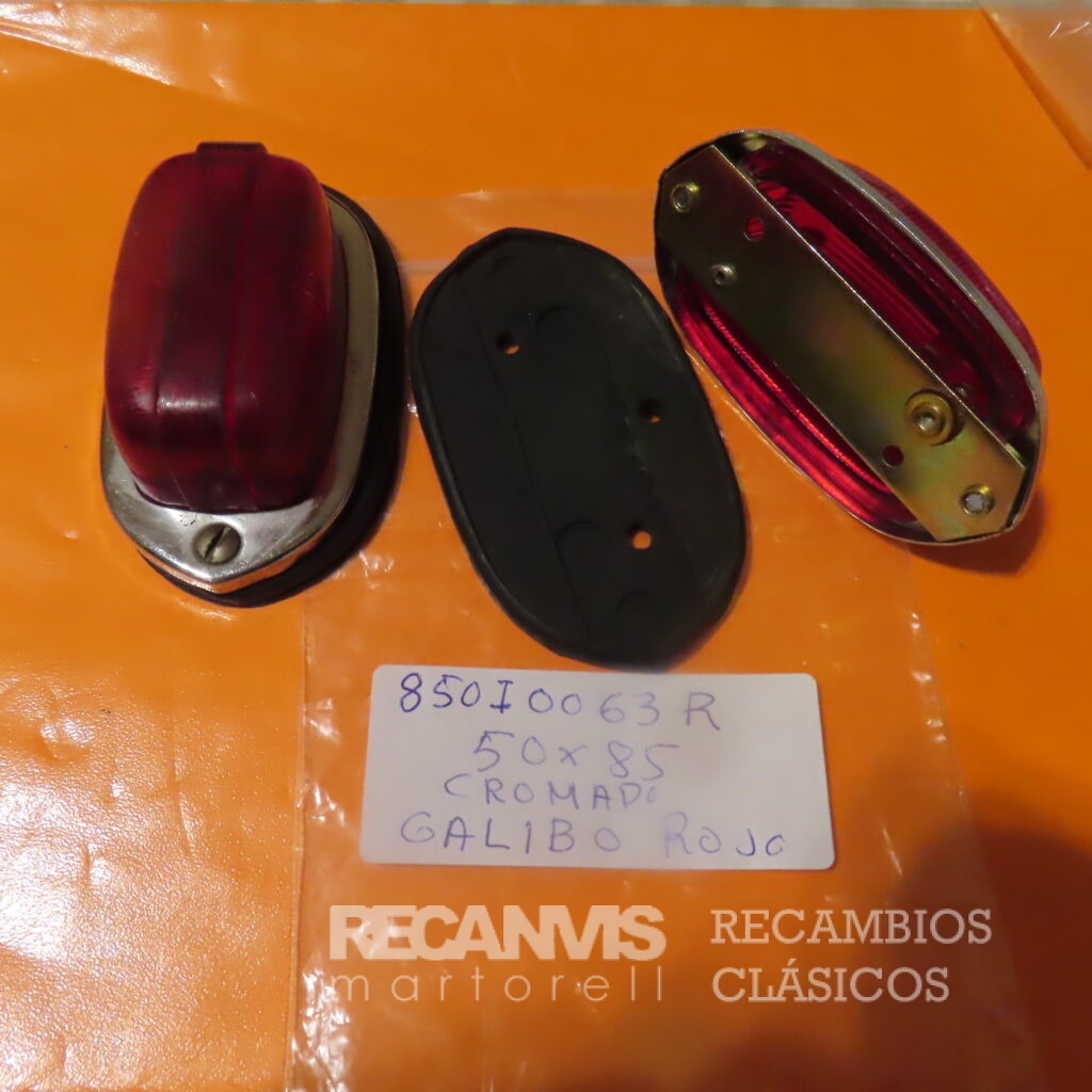 850I0063R PILOTO GALIBO CLASICO RECTANGULAR rojo 50x85mm (Precio UNIDAD) Cerquillo Cromado