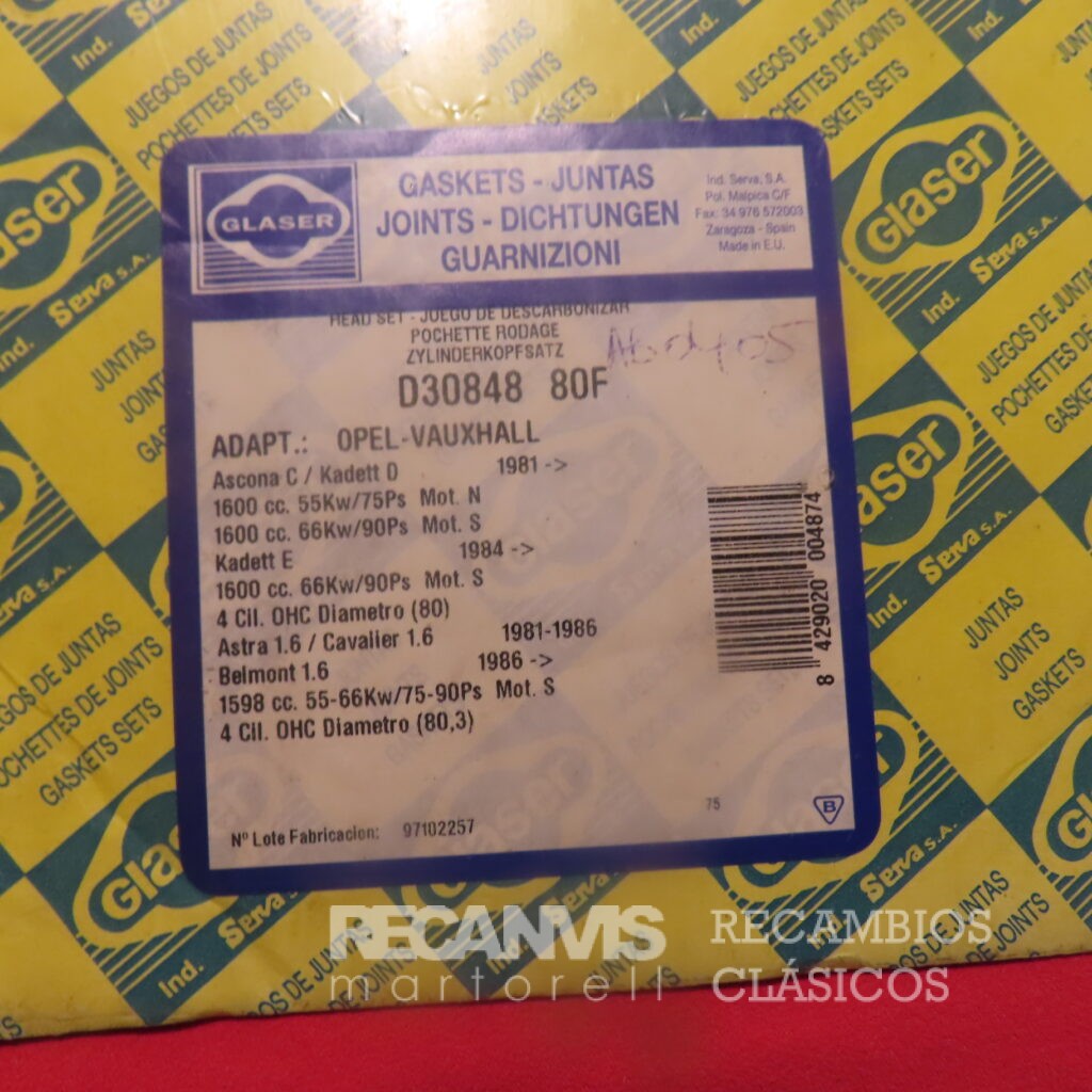 GLAC302610RF JUEGO JUNTAS CAJA CAMBIO MARCHAS RENAUT-12 TL S TS GT