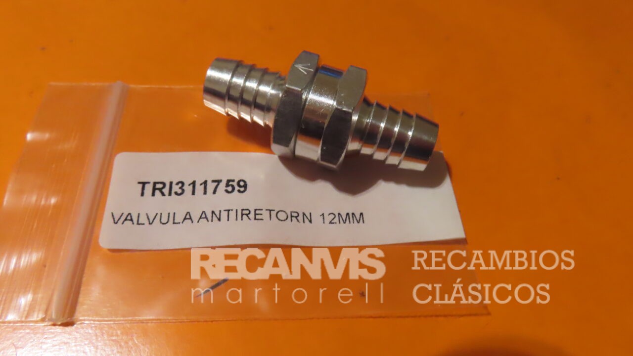 TRI311758 VALVULA ANTIRETORNO GASOLINA y GAS-OIL PARA Intercalar TUBO 12mm (Universal)